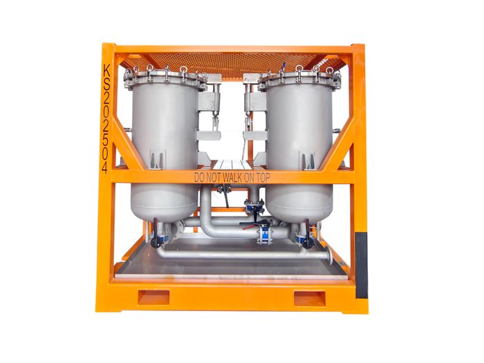 KES Separation dual vessel filtration unit allows the operator to open and close the filter vessel quickly and safely forc hanging the filter cartridges. The unit is designed and built in accordance with DNV 2.7/IS010855/ EN12079 and certified by DNV or Lloyds.